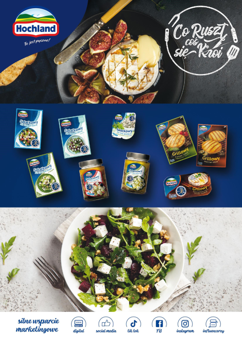 Do sałatek Hochland proponuje sery typu greckiego. Do wyboru jest klasyczna wersja w bloczku – tradycyjna, z ziołami lub lekka oraz w kostkach bez oleju. Portfolio uzupełniają warianty w gotowej zalewie oleju z oliwkami i papryką lub z ziołami. Wystarczy dodać sałatę lub inne ulubione warzywa i pyszne danie w śródziemnomorskim klimacie gotowe. Na grilla Hochland poleca zaś rozpływający się w ustach naturalny camembert, który stanowi doskonałą przekąskę w letnim stylu. Z kolei medaliony skrywające wspaniale topiący się ser – klasyczne bądź z pomidorami i bazylią – będą idealne dla wszystkich fanów intensywnego smaku. Można je serwować samodzielne jako sycące danie lub dodatek do sałatek czy mięs.