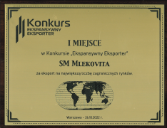 Nie tylko wrzesień z rekordową Polagrą – październik również obfitował w liczne nagrody dla lidera branży mleczarskiej w Europie Środkowo-Wschodniej. Mlekovita zajęła 1. miejsce w prestiżowym konkursie „Ekspansywny Eksporter”, a jej produkty zdobyły najwyższe laury w konkursie „Złote Innowacje FMCG & Retail 2022”.