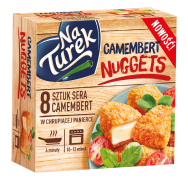 NaTurek Camembert Nuggets to aż 8 kawałków sera camembert w złocistej, chrupiącej panierce – idealnych w roli szybk...