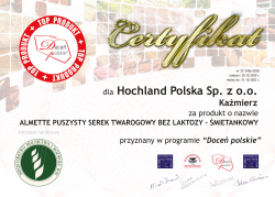 Ser Kremowy Hochland, Naturalnie, że pyszny! Gouda oraz Almette puszysty serek twarogowy bez laktozy śmietankowy otrzymały certyfikaty „Doceń polskie” przyznawane w ramach Ogólnopolskiego Programu Certyfikacyjnego „Doceń polskie”. Oba produkty zdobyły maksymalne noty we wszystkich kategoriach i przyznano im najwyższy Laur Programu - Godło “Doceń polskie TOP PRODUKT”.
