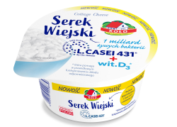 Serek wiejski L.Casei 431 + wit. D3 150g to naturalny serek wiejski zawierający specjalnie wyselekcjonowany przez firmę Chr. Hansen szczep bakterii L.Casei 431 oraz witaminę D, która pełni bardzo istotne funkcje w organizmie człowieka. Przede wszystkim wspiera działanie układu odpornościowego ale również pomaga w utrzymaniu zdrowych kości i zębów, w prawidłowym funkcjonowaniu mięśni, pomaga w prawidłowym wchłanianiu fosforu i wapnia oraz utrzymuje jego prawidłowy poziom we k...