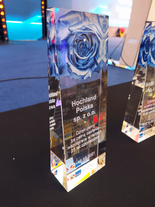 Przy okazji uroczystej Gali AHK przypomniano ważne momenty minionego 25-lecia i wyłoniono zwycięzcę Polsko-Niemieckiej Nagrody Gospodarczej 2021. W podziękowaniu za aktywną 25-letnią współpracę z AHK Polska, podczas gali wręczono 58 firmom partnerskim pamiątkową statuetkę. W ten sposób podziękowano firmom członkowskim, w tym także Hochland Polska, które są z AHK od samego początku, wspierają działania i aktywnie uczestniczą w życiu Izby.