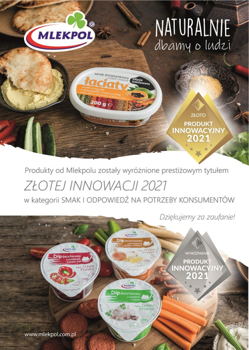 W 4. edycji konkursu Złote Innowacje FMCG & Retail 2021 w gronie laureatów w kategorii Nabiał znalazł się serek śmietankowy Łaciaty smak indyjski z konopiami i czarnuszką, który został doceniony przez konsumentów za wyjątkowy smak. Natomiast wprowadzenie na rynek Dipów śmietanowych typu crème fraiche okazało się trafną odpowiedzią na potrzeby konsumentów, co potwierdziło wyróżnienie w tejże grupie.