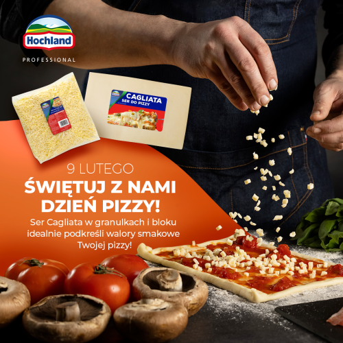 Polacy kochają kuchnię włoską. Uwielbiamy nie tylko makarony, risotto czy desery, ale przede wszystkim pizzę. Ser podpuszczkowy Hochland Cagliata ma szerokie zastosowanie w gastronomii i idealnie wpisuje się w Międzynarodowy Dzień Pizzy! Cagliata to ser do pizzy i przekąsek o delikatnym i kremowym smaku. Występuje w formie granulek oraz bloku, ma wysoką jakość i wydajność. Równomiernie rozpływa się po powierzchni ciasta i nie pozostawia plam tłuszczu na pizzy. Po wypieku uzyskuje apetyczną barwę oraz doskonale łączy składniki potraw. Ser idealnie topi się oraz pozostaje ciągnący.