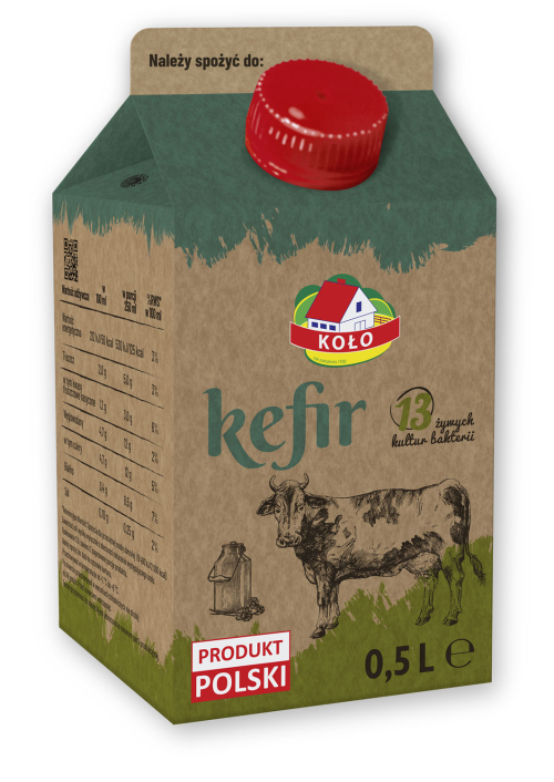 Kefir 13 żywych kultur bakterii to łatwostrawny, orzeźwiający napój. Posiada bogaty skład odżywczy: pełnowartościowe białko, witaminy i składniki mineralne, łatwo przyswajalny wapń. Zapakowany jest w nowy karton Brown Board który ma o jedną warstwę mniej w porównaniu do kartonów najczęściej używanych do pakowania produktów w łańcuchu chłodniczym.
