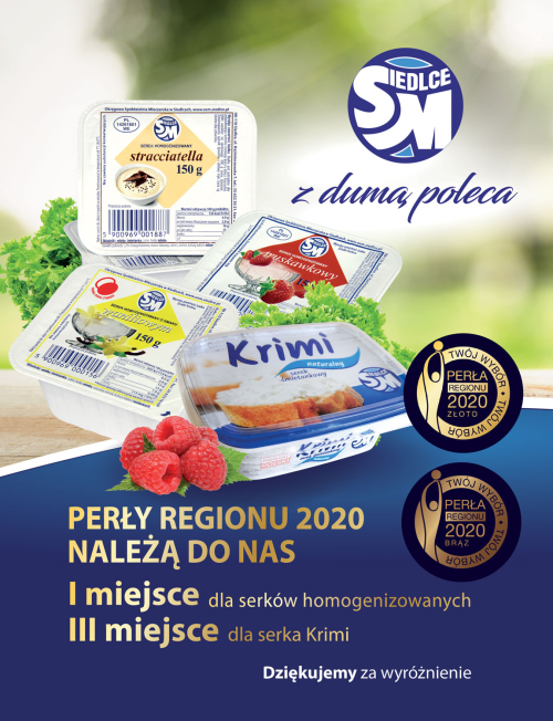 Okręgowa Spółdzielnia Mleczarska w Siedlcach z wielką przyjemnością informujemy, że nasze produkty zdobyły miejsca na podium w ogólnopolskim badaniu „Perły Regionu 2020”.