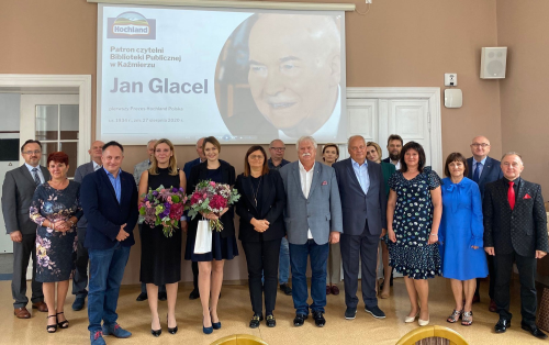 Równo w pierwszą rocznicę śmierci pierwszego Prezesa Hochland Polska odbyło się uroczyste otwarcie czytelni Biblioteki Publicznej w Kaźmierzu. W spotkaniu, które odbyło się na zaproszenie Pani Dyrektor Biblioteki Publicznej i Centrum Kultury w Kaźmierzu, uczestniczyły wnuczki Śp. Jana Glacela, Dyrektor Generalny i Prezes Zarządu wraz innymi Pracownikami firmy Hochland Polska, a także Wójt Gminy wraz z przedstawicielami Urzędu Gminy w Kaźmierzu. Powiat Szamotulski reprezentowali Starosta, Radny Powiatu Szamotulskiego oraz Dyrektor Muzeum Zamek Górków. Uroczystość otwarcia poprzedził występ chóru Fermata i krótka prezentacja osoby Jana Glacela.