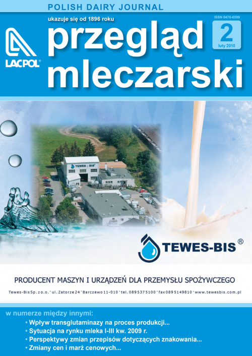 Streszczenie: Zastosowanie enzymu transglutaminazy, poza wstępnym przygotowaniem mleka nie wymaga istotnych modyfikacji technologii. Stwierdzono wzrost wydatku produkcji rzędu 10-15% poprzez większą retencję białek serwatkowych. Nie zmienia to w znaczący sposób składu chemicznego twarogów. Wyroby doświadczalne wykazywały wzrost zwięzłości i twardości w stosunku do kontrolnych od 10 do 100%. Zmianom uległy również niektóre deskryptory oceny sensorycznej.