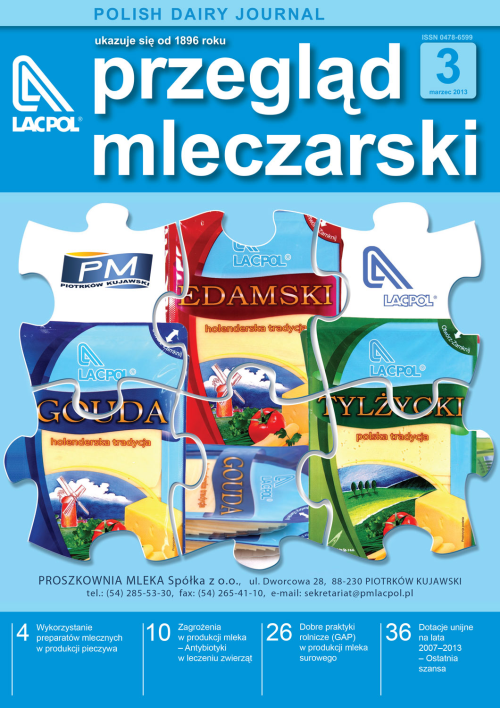Streszczenie: Produkcja mleka wysokiej jakości to niewątpliwie najważniejszy warunek jego przydatności technologicznej oraz w dalszym etapie odpowiedniej jakości i trwałości gotowych produktów mleczarskich. Stany zapalne wymienia są częstą przyczyną zmian nie tylko w zakresie podstawowych składników odżywczych i mineralnych, ale prowadzą do pojawienia się lub do wzrostu koncentracji wielu substancji aktywnych biologicznie. Należy zaznaczyć, że przyczyny występowania mastitis mogą być prozaiczne: zimno, przeciągi, złe odżywianie, uszkodzenia mechaniczne wymienia czy nieprawidłowo przeprowadzony dój. Natomiast jej skutki są bardzo dotkliwe zarówno dla hodowców (którzy ponoszą ogromne straty finansowe), odbiorców mleka (utrudniony przerób surowca), jak i również dla konsumentów (występowanie endotoksyn wytwarzanych przez chorobotwórcze mikroorganizmy). Zapalenie wymienia, czyli mastitis obok zaburzeń metabolicznych zaliczane jest do najpoważniejszych źródeł strat w produkcji mleka. W roli czynników etiologicznych mastitis występuje około 150 gatunków drobnoustrojów. Rolę dominującą w wywoływaniu zapaleń mają: Streptococcus agalactiae, Str. uberis, Str. dysgalactiae, Staphylococcus aureus, Escherichia coli oraz wiele innych mikroorganizmów, tj.: Mycobacterium bovis, Aspergillus sp.