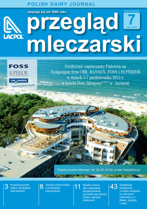 Streszczenie: Bakterie Bacillus cereus, tworzące ciepłooporne przetrwalniki, stanowią nie tylko zagrożenie dla zdrowia konsumentów, ale także są przyczyną wad mleka i mlek niefermentowanych. W artykule scharakteryzowano właściwości bakterii B. cereus oraz opisano wady jakościowe (bitty cream, sweet curdling) i zatrucia pokarmowe będące efektem intoksykacji i toksykoinfekcji wywoływanych przez B. cereus. W opracowaniu przedstawiono także źródła, drogi oraz wektory przenoszenia bakterii i sporów w gospodarstwie oraz w zakładzie mleczarskim. Ponadto, zostały opisane liczne środki kontroli nad bakteriami B. cereus stosowane w przetwórstwie mleka i podczas produkcji innych środków spożywczych.